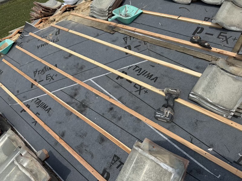屋根をめくって内部を確認し、傷んでいた防水紙を新しく張り替えています。