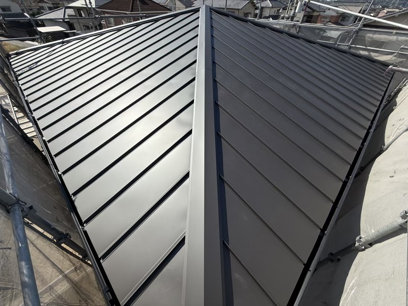 新しい屋根には、傾きがゆるい屋根でも雨が入りにくい「立平葺き」を採用しました。